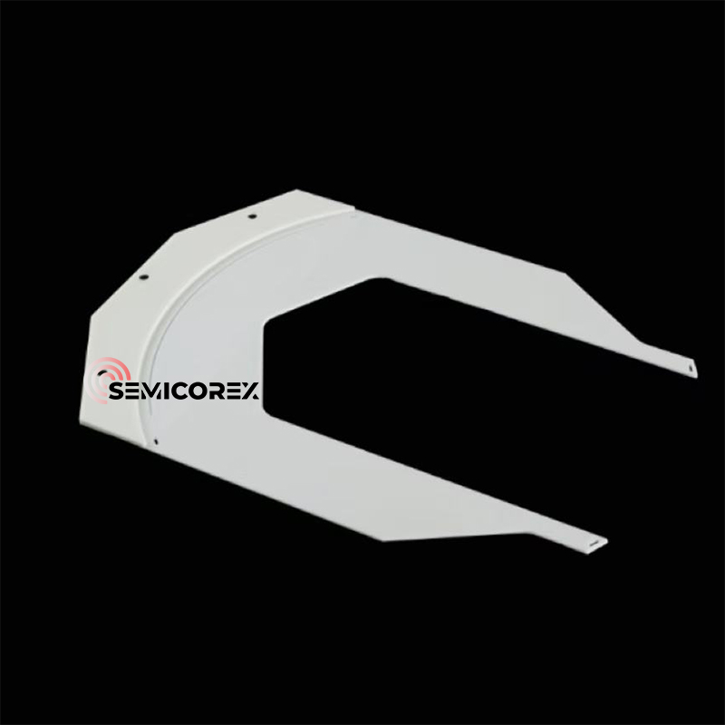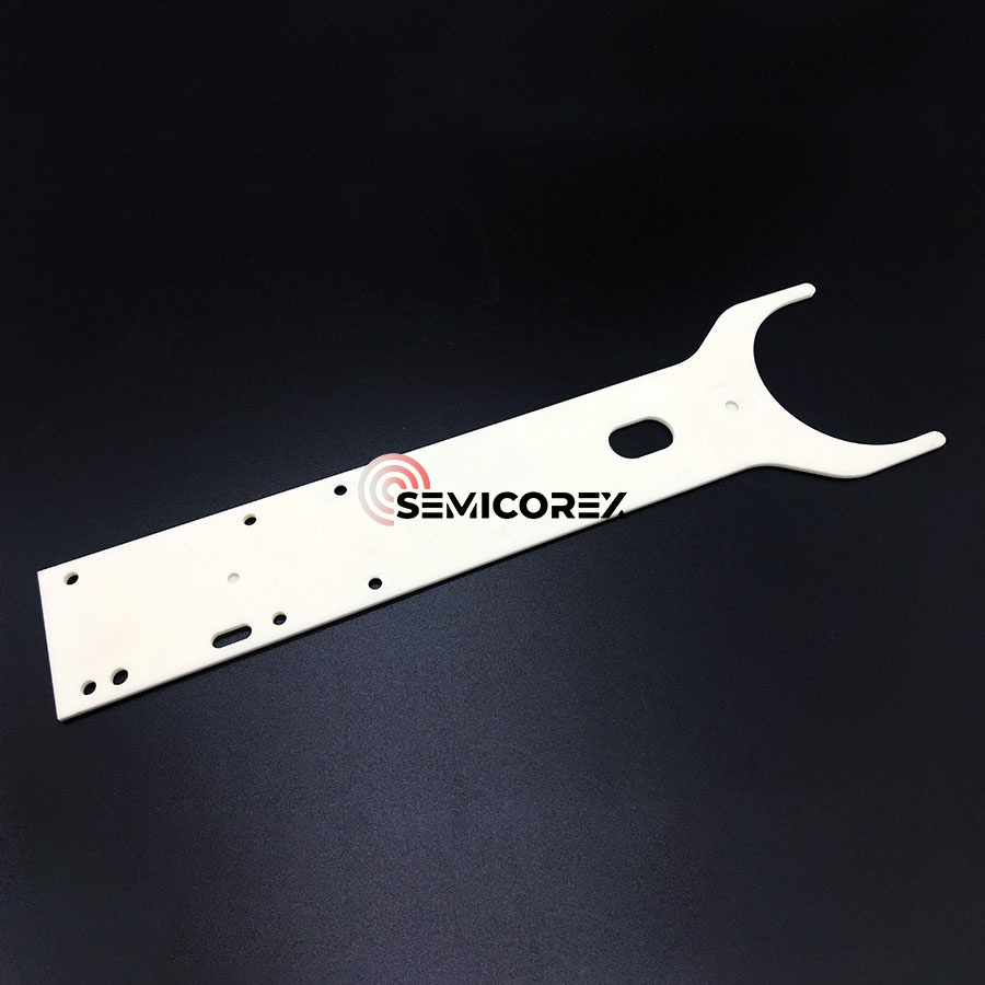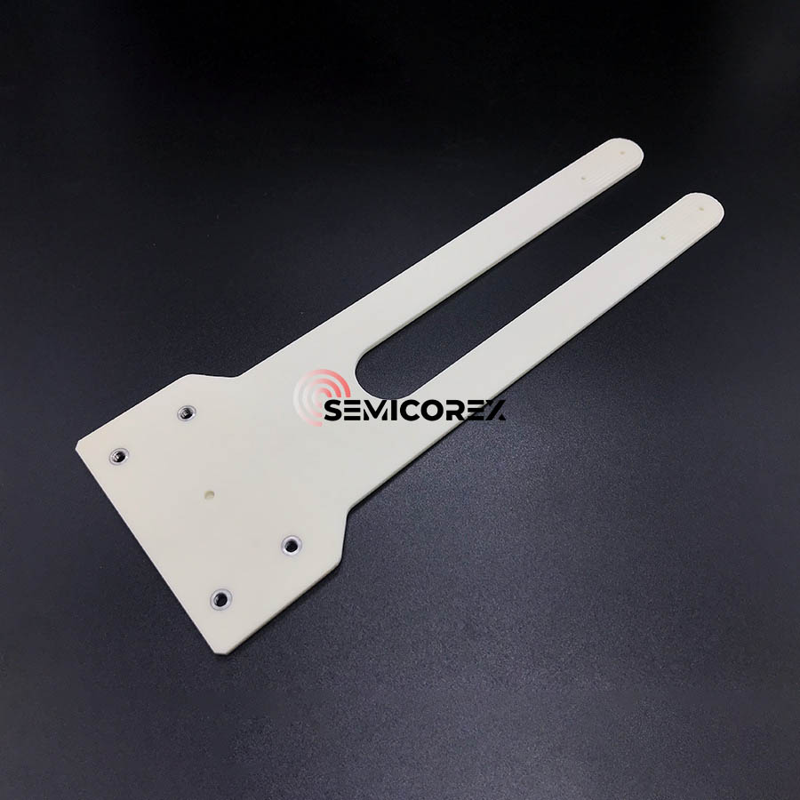 Brațul ceramic de alumină este proiectat cu accent pe compatibilitate și precizie. Fiecare braț este realizat la toleranțe dimensionale strânse, asigurând alinierea și mișcarea exactă a waferului și compatibilitatea cu echipamentele automate de manipulare a navei și sisteme robotizate. Finisajul de suprafață neted și lustruit prezintă o interfață de frecare scăzută cu placa care reduce șansa de a zgâria placa, ceea ce este esențial pentru integritatea plafonului/curățenia mediului și reducerea vitezei de defecte. Aceste toleranțe proiectate asigură că brațul funcționează liber într-un mediu cu randament ridicat cu ritm rapid și permite fluxurile de lucru semiconductoare atât umane, cât și complet automatizate pentru braț.