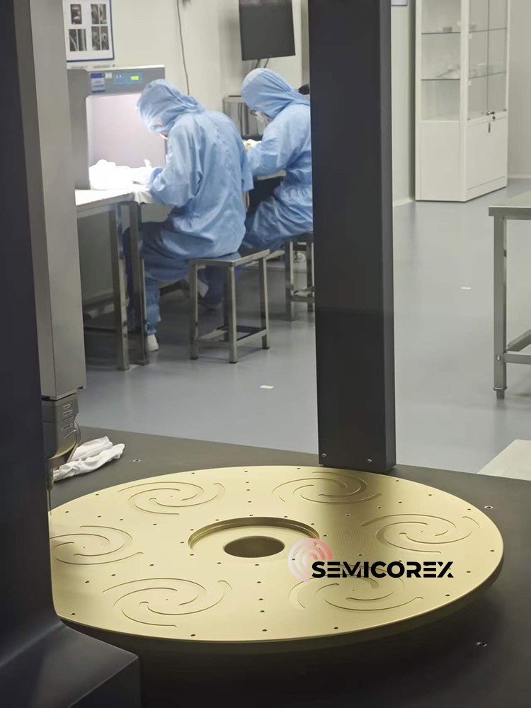 Configurația geometrică a susceptorului a fost optimizată, incluzând canalele de flux de gaz, designul de buzunar și caracteristicile suprafeței. Acest lucru promovează poziționarea stabilă a plachetei pe susceptor în timpul epitaxiei și o uniformitate îmbunătățită a încălzirii, crescând astfel uniformitatea și consistența grosimii epitaxiei, rezultând un randament mai mare de dispozitive fabricate pentru fabricarea semiconductoarelor de putere.
