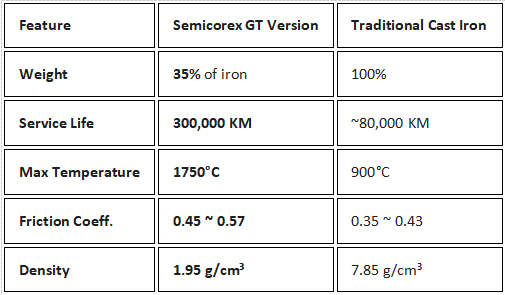 Reducerea masei: Versiunea GT cântărește doar 35% față de un disc din fontă standard.