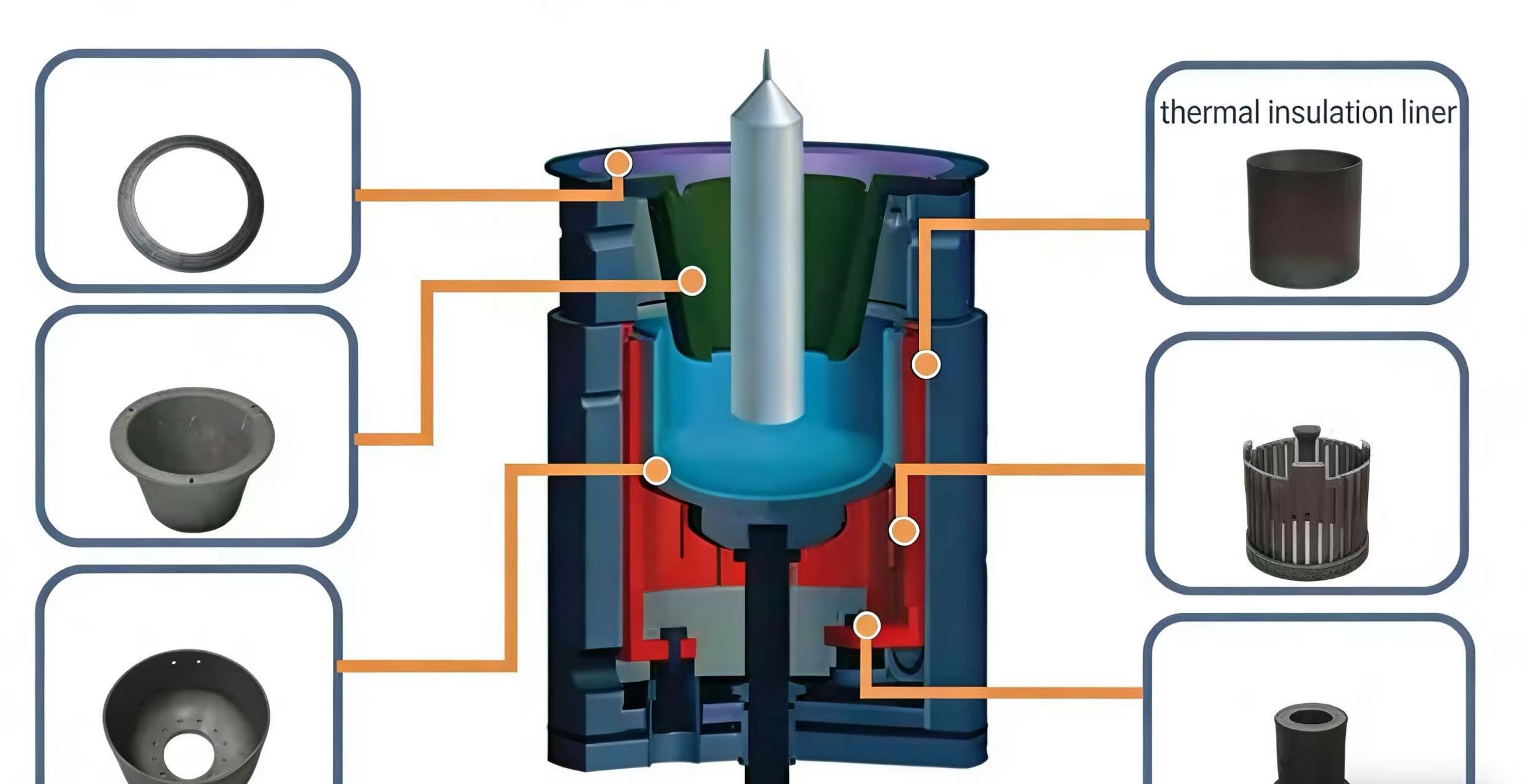 PV carbon-ceramicgarnituri termoizolantesunt plasate de obicei în afara creuzetelor în sistemul fotovoltaic cu zonă fierbinte, împreună cu componente precum creuzetele, cilindrii de ghidare a fluxului și componentele de încălzire. Servind în primul rând funcțiile de izolație auxiliară, izolație termică și suport structural, căptușelile de izolare termică PV carbon-ceramică pot ajuta la menținerea uniformității și stabilității temperaturii în zona fierbinte fotovoltaică, oferind astfel condițiile de funcționare adecvate pentru topirea și creșterea siliciului.