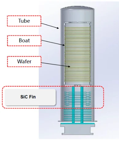 Semicorex solidaripioare din carbură de siliciusunt instalate de obicei ca componente de izolare termică în interiorul tuburilor verticale ale cuptoarelor ale echipamentelor de tratare termică cu semiconductori, cum ar fi cuptoarele de recoacere RTP și cuptoarele de difuzie. Aripioarele din carbură de siliciu solidă Semicorex pot regla eficient distribuția temperaturii în cuptoarele cu temperatură înaltă și pot minimiza deteriorarea termică a pieselor de etanșare a ușilor de proces cauzate de temperaturile ridicate. În condiții de operare cu oxidare umedă, aripioarele din carbură de siliciu solidă Semicorex pot fi utilizate pentru a preveni în mod eficient impactul negativ asupra rezultatelor procesului și a dispozitivelor semiconductoare cauzate de condensarea vaporilor de apă la temperaturi de proces relativ scăzute.
